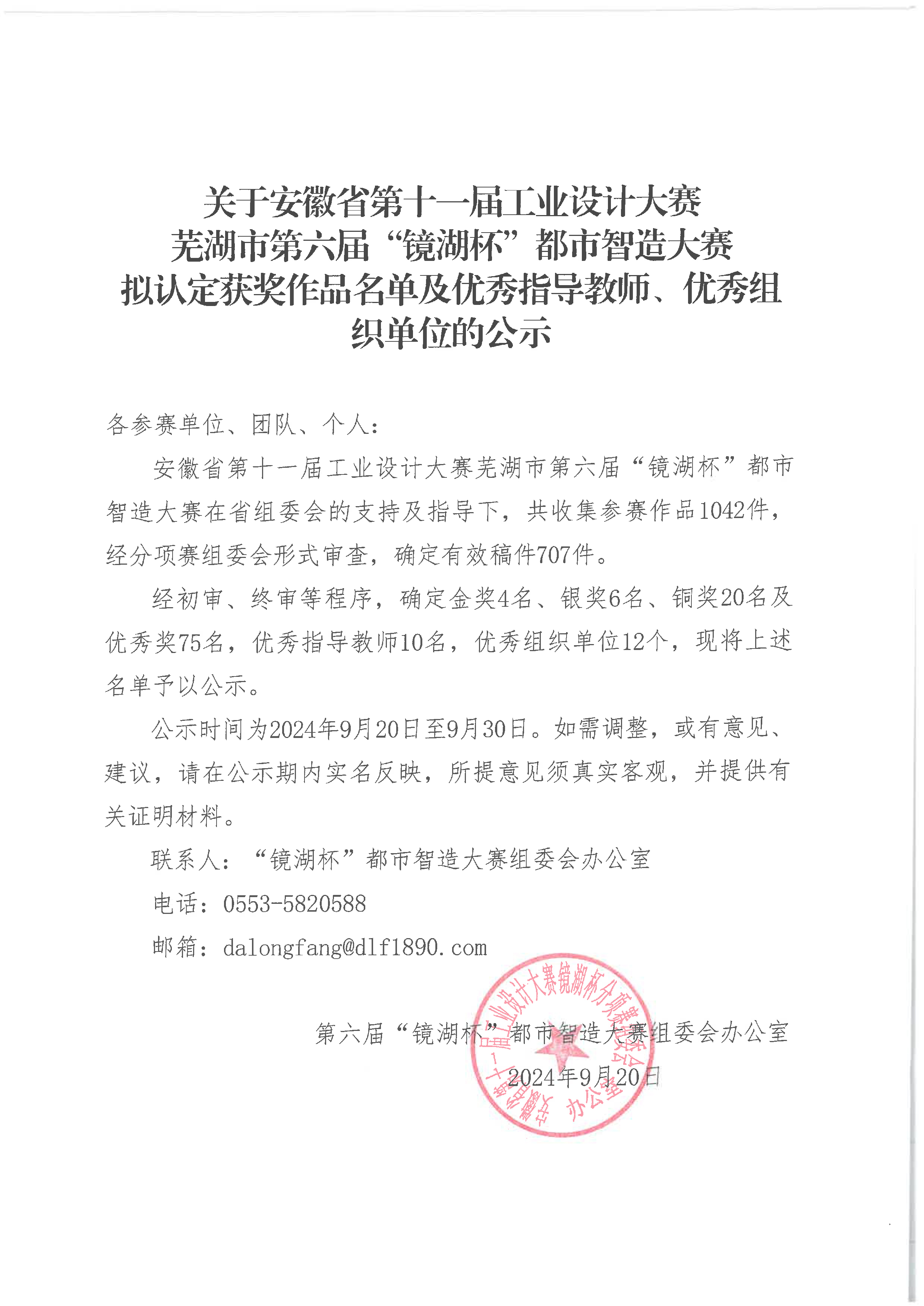 關(guān)于安徽省第十一屆工業(yè)設(shè)計大賽 蕪湖市第六屆“鏡湖杯”都市智造大賽 擬認(rèn)定獲獎作品名單及優(yōu)秀指導(dǎo)教師、優(yōu)秀組織單位的公示