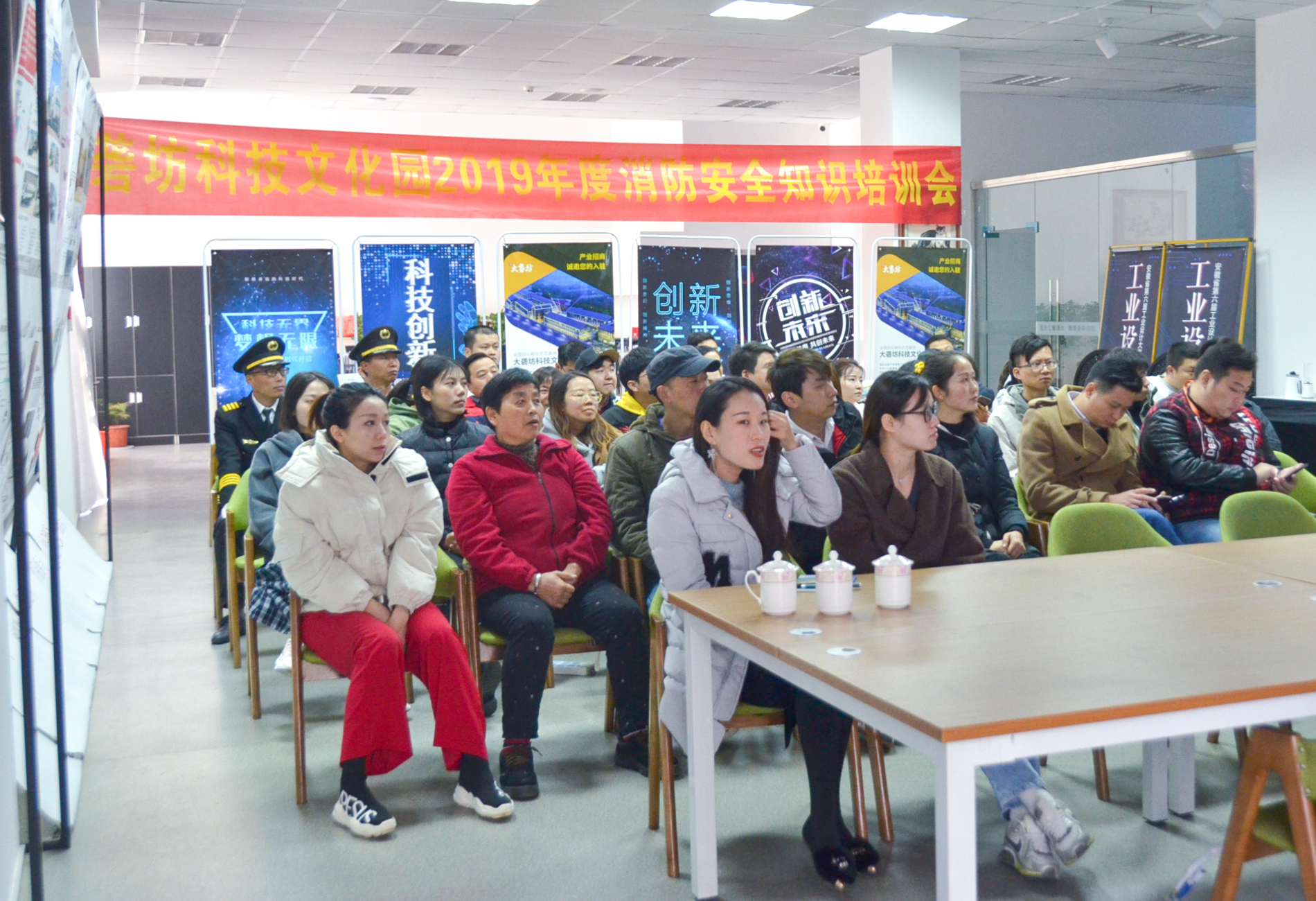 為加強(qiáng)園區(qū)企業(yè)人員的消防安全意識(shí),進(jìn)一步普及消防安全基本常識(shí),學(xué)習(xí)掌握各種消防設(shè)施的使用方法,提高自防自救能力。大礱坊科技文化園于11月19日上午邀請(qǐng)金馬門(mén)消防中隊(duì)白教官,在A03棟一樓開(kāi)展“消防安全培訓(xùn)及演練”。園區(qū)企業(yè)負(fù)責(zé)人、消防安全責(zé)任人、企業(yè)行政、企業(yè)員工等共45人參與活動(dòng)。