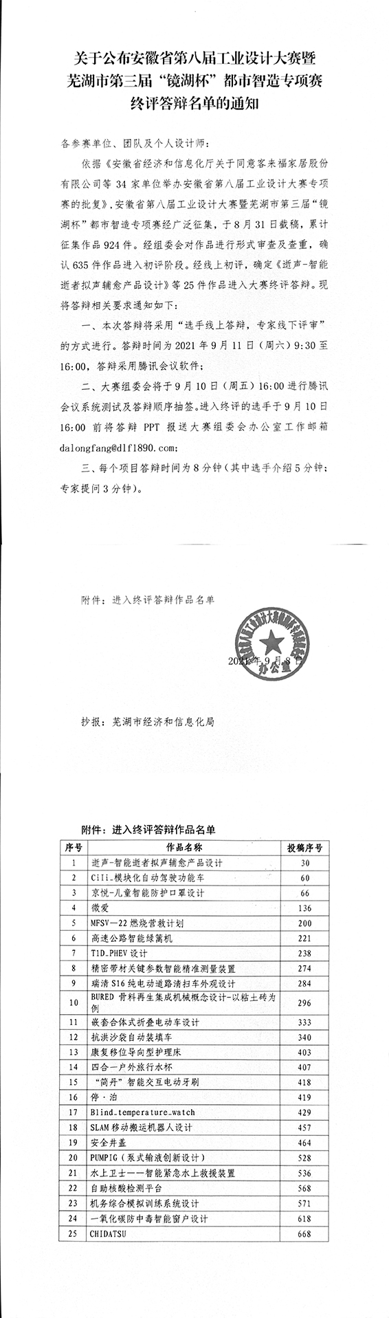 關(guān)于公布安徽省工業(yè)設(shè)計(jì)大賽“鏡湖杯”專(zhuān)項(xiàng)賽終評(píng)答辯名單的通知